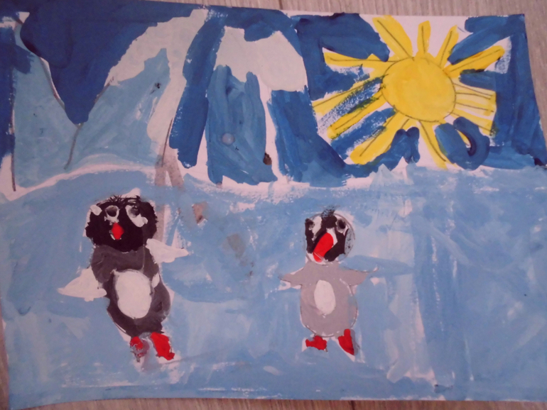 Это наши корявенькие попытки рисовать красками