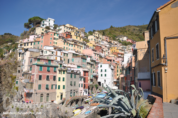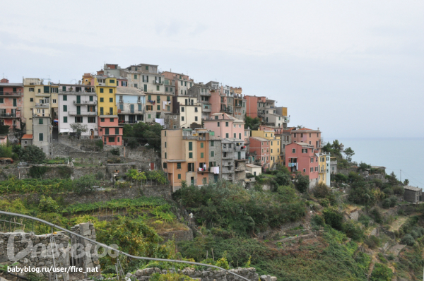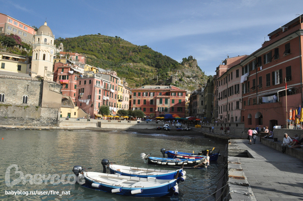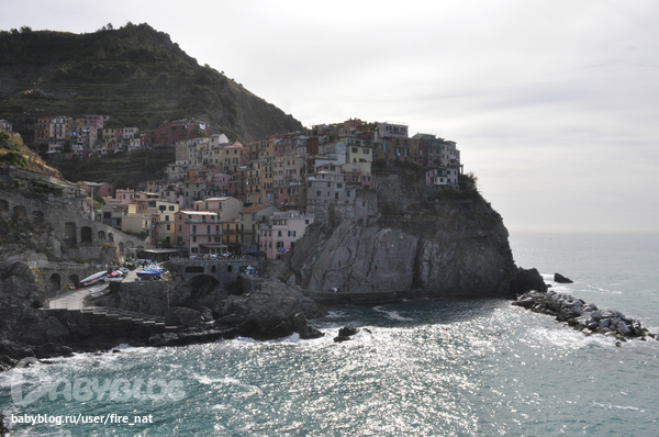 И финальная часть нашего балета :) Это удивительное место Чинкве Терре Cinque Terre - Пять земель. Пять маленьких городков на скалах, настолько маленьких, что авто там запрещены (особо негде ездить). Везде одна центральная улочка, от нее куча ступенек к остальным домам, буквально 2-3 ресторанчика ну с очччень вкусным сифудом, паста с лобстером - обычная вещь :) Между городами есть 2 дороги: пешая, по краю скалы, "Дорога Любви" называется, к сожалению, в этом году закрыта из-за оползней. И поезд, типа метро, туннель в скалах, вот его мы и использовали. Теперь фото каждого городка.
