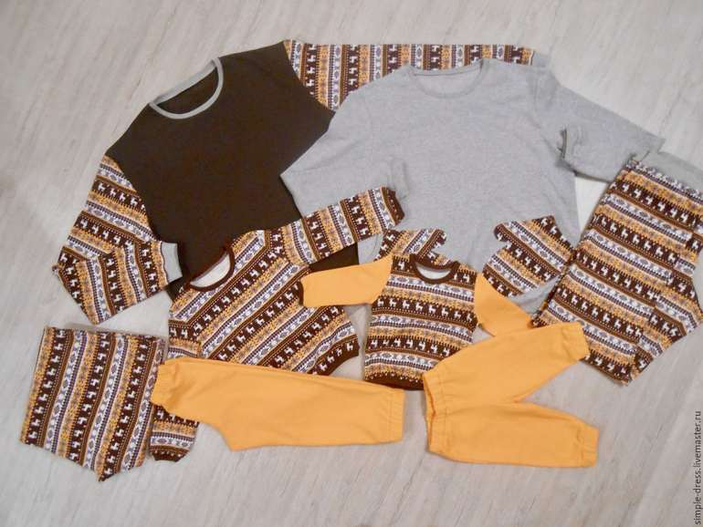 Ткани плотные, отличного качества, некоторые с нежным начесом с изнаночной стороны. Только хлопковые ткани. Возможно заказать в любой комплектации. Стоимость детского костюма до роста 110 составит 1300 рублей, до роста 140 - 1700 рублей, взрослый - 2700.