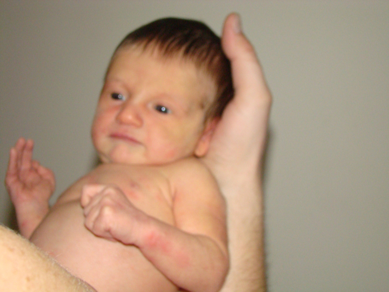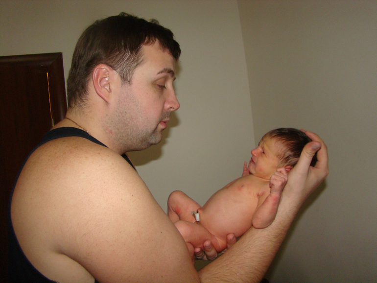 Полезла так же головой..сама...ну и по проторенной уже дорожке прям выскользнула. Ее туда же---ко мне на груди и живот--обеих. (Тужилась я со второй...держа первую одной рукой на груди...второй за поручень :-)))