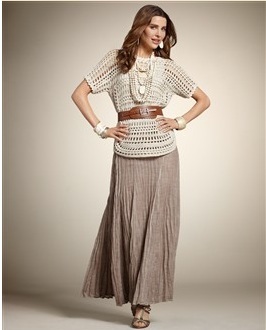 Ирин, у меня есть такая же юбка из шифона, но только с широким поясом, черная. Я, конечно, не Донателла Версаче))), но ношу ее с босоножками на устойчивом каблуке (не шпилька), сверху - тоненькая маечка трикотажная "в облипку" и кожаная жилетка со стразами на стойке-воротничке (кожа очень тонкая, типа перчаточной), на руку правую - браслет пластмассовый, обшитый шифоном и маленький клатч.