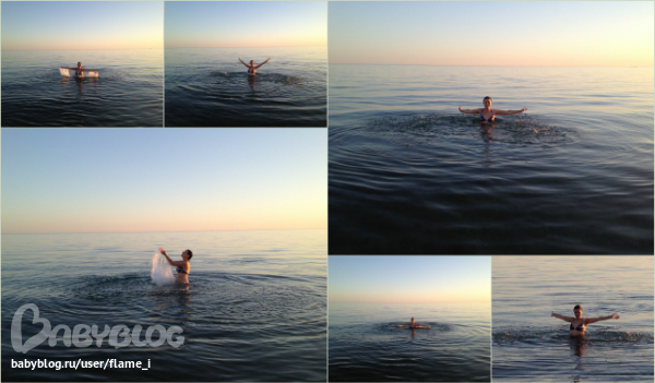 И наблюдать закат...сидя в воде, как бегемот...по самые глаза....солнечный диск опускается невероятно быстро....и дорожка блещется...и вода в это время становится Золотой.....