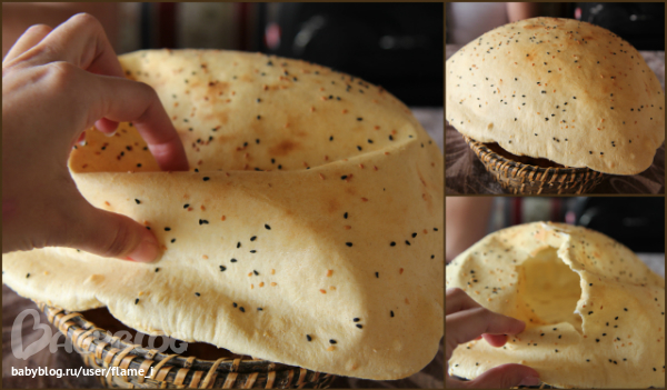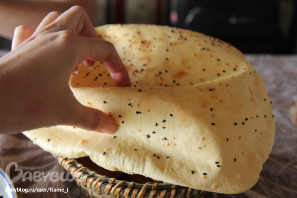 Привлекла внимание большая лепешка "надутая"...с черным кунжутом...