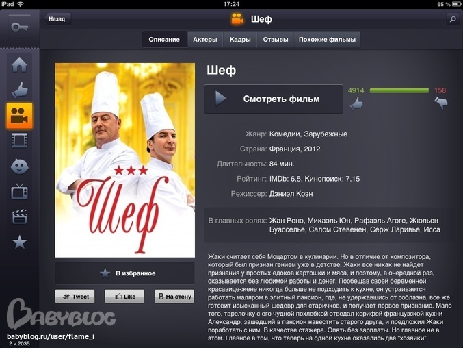 Ириша,а где ты качала программу?на app store нет ее.люблю всякие фильмы смотреть,когда делаю разные разности))обычно на ivi смотрю,иногда контакт.