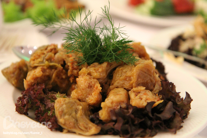 Еда вся красивая и вкусная... не было банальщины, как на всех банкетах, все как-то красиво и необычно...