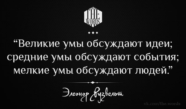 Ну не знаю я, хоть убейте, ни одного человека, который никогда не обсуждает людей. Думаю, что и Элеонора Рузвельт не обошлась без обсуждений в сторону, например, Люси Пейдж Мэсер, любовницы своего мужа, которую она, к слову сказать, уволила-таки...
