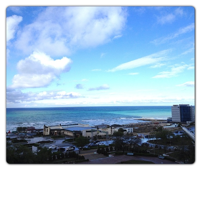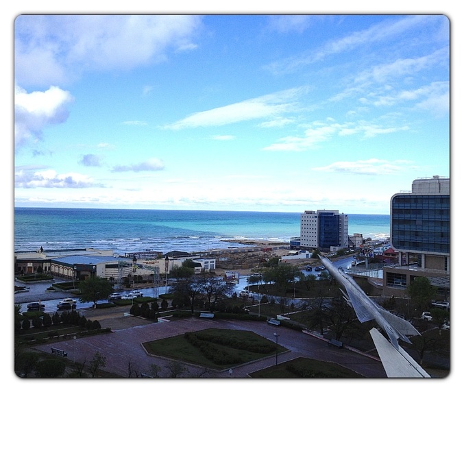 Фото аллеи нашей ( Дорожка по направлению к самолетику- вон он, в центре фото)- упорная девочка Марина идет с тренировки утренней...а я получается в этот момент фотографирую из дома море :-))
