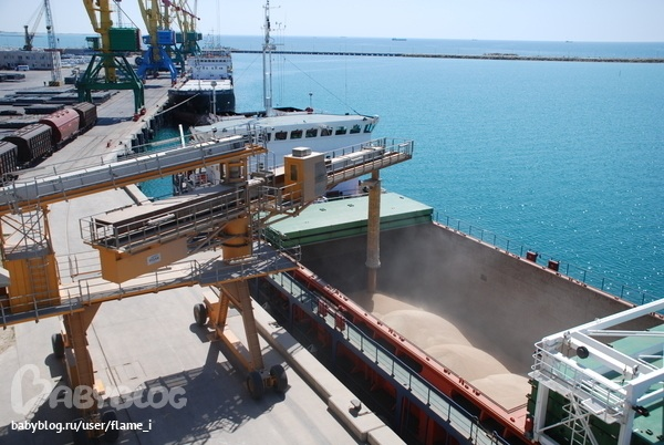 Вот корабли из разных стран, в которые грузится наше зерно... Сколько раз я наблюдала эту погрузку...