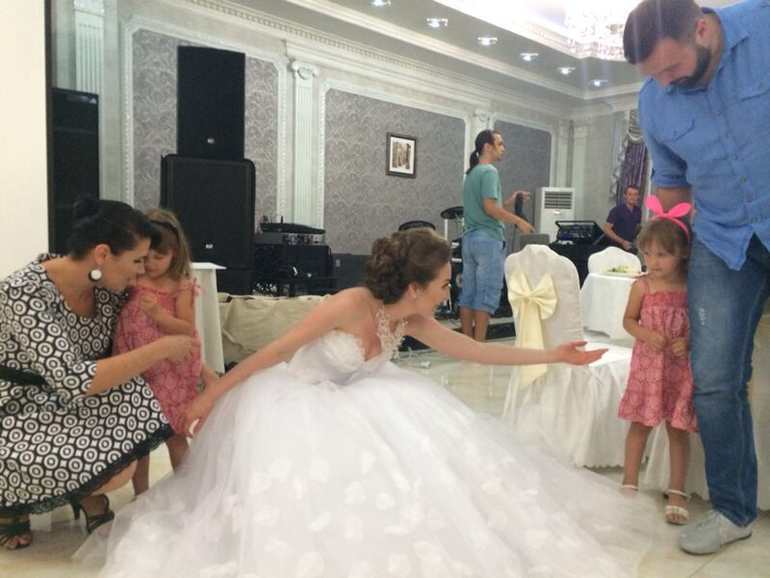 Под конец вечера - мы забрали Дочек (они были у Марины - об этом будет отдельный пост), ибо Они ОЧЕНЬ Любят Невест! Когда видят их на фотосессиях в парке напротив - то бегают за ними и зачарованно смотрят. А здесь прям застеснялись... А потом уже "издалека" спрашивали "а где цветы невесты", и "почему нет платочка" (фату так называют), ибо ее отсутствие очень их расстроило :-))