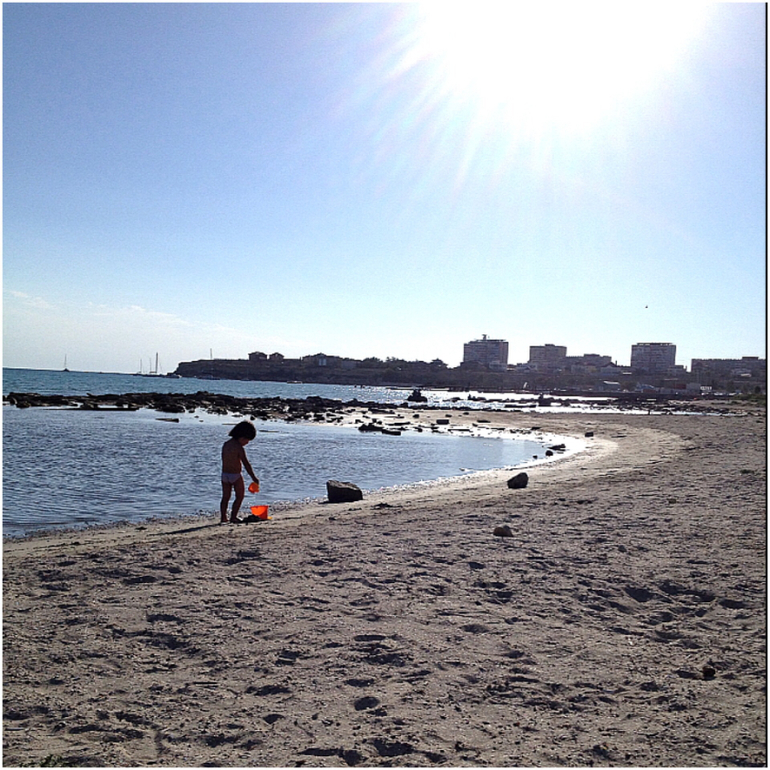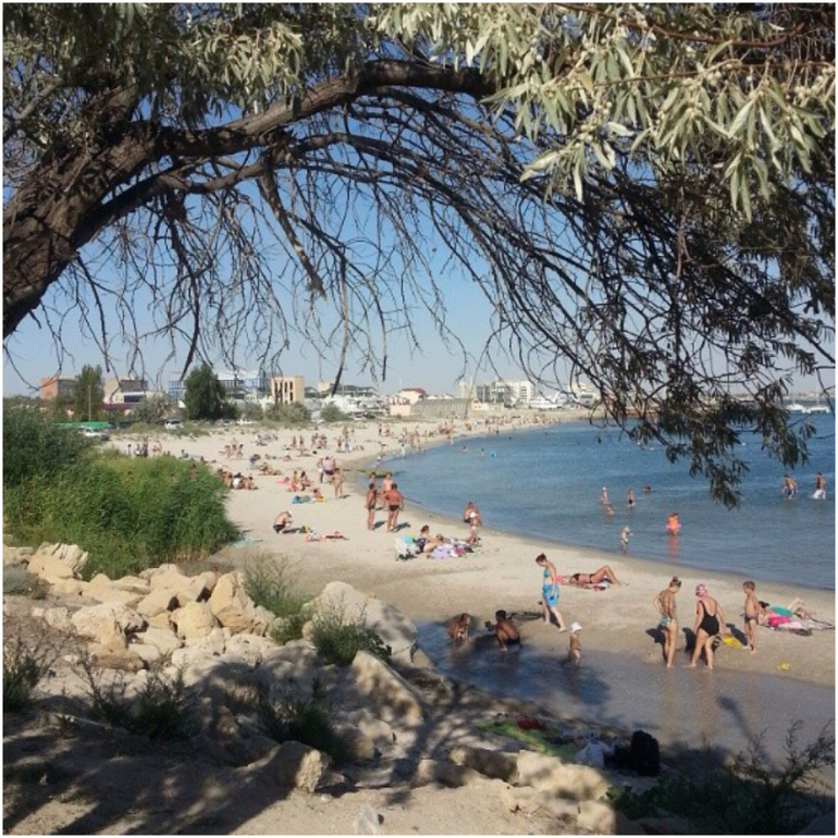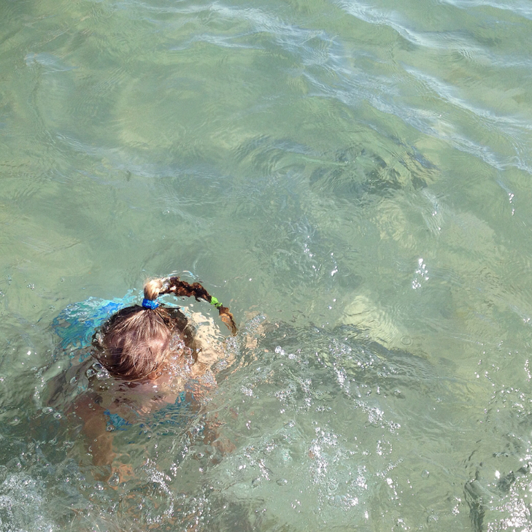 на удивление — пару-тройку раз попыталась типа "поплыть как Русалочка"...вот и уходила с головой :-)п.с. да — там до камней — совсем мелко по щиколотку....вода чистая...деткам место и бегать и валяться и играть. И переживать-дергаться, что упадет...хлебнет — не надо. А после камней уже начинается с "по пояс"и глубже