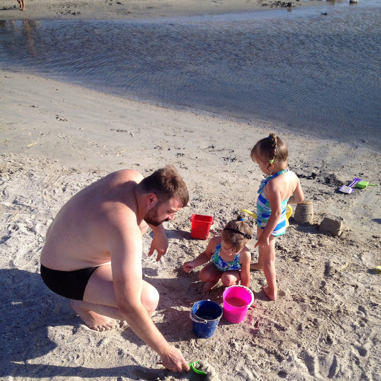 Поспали несколько часов все....и отправились на море. Так как уже был вечер - ехать куда-то далеко за город (как обычно все стараются делать) - не хотелось.... Поэтому остались в городе....Но именно в этом месте оказалось - мало народа, хороший пляж...и место для купания детей....И несмотря на ветерок - дочи были "русалками", лепили "паски"....и несколько часов мы провели не напряжно и без усталости, как это часто бывает на море...