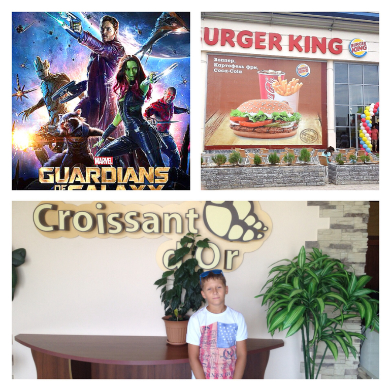 Затем пошли в только что открывшийся у нас "Бургер-Кинг", набрали вредной еды, и помчались в кинотеатр на "Стражи галактики" :-)