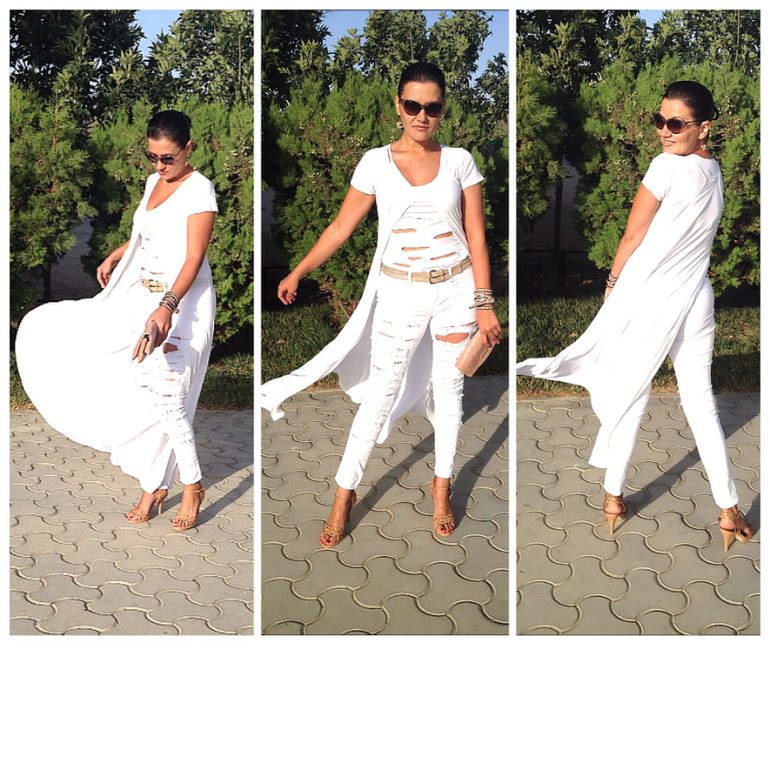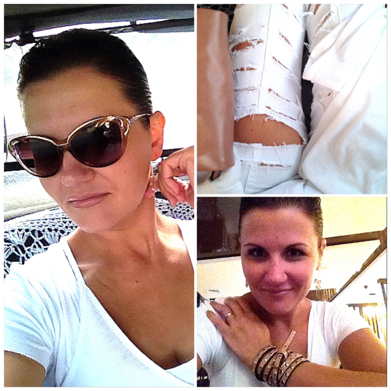 Ты просто шикарная!!! А когда я прочитала, что ети все твои наряды еще и самоделки, так вообще в обмороке! Правильно муж меня ругает, что нет вкуса...:( Никогда бы не додумалась, что такой шик может получиться! А на руке у тебя хчто намотано? Тоже своя придумка, или это браслет? В общем- шикарно!