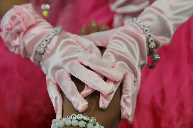 Главное - это наша страсть - длинные "большие" платья принцесс!!!!!!! Да еще и розового цвета! И в камнях! И ниж похож на мой свадебный наряд! Красотень!!!!