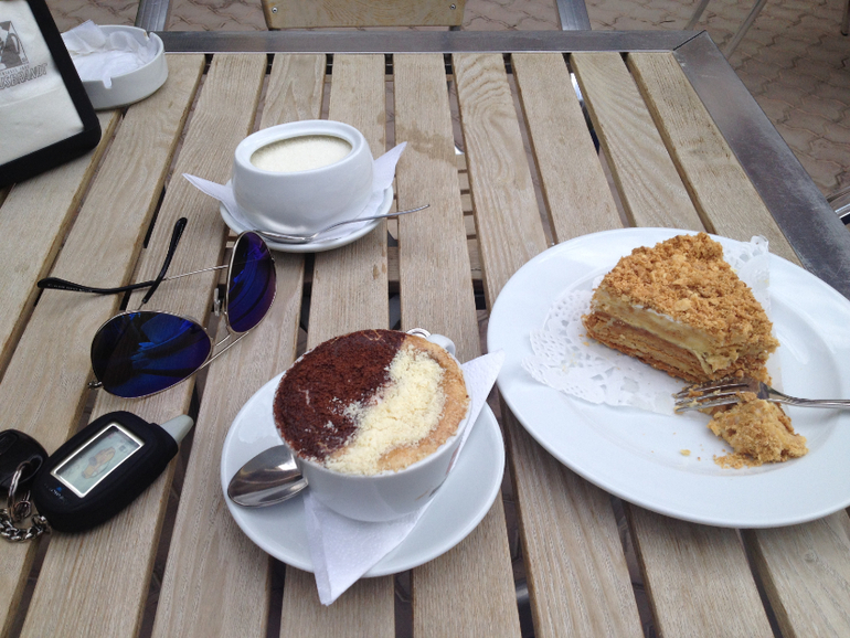 Затем на улице, в кафешке, выпила кофе по-венски с кусочком "Наполеона",...