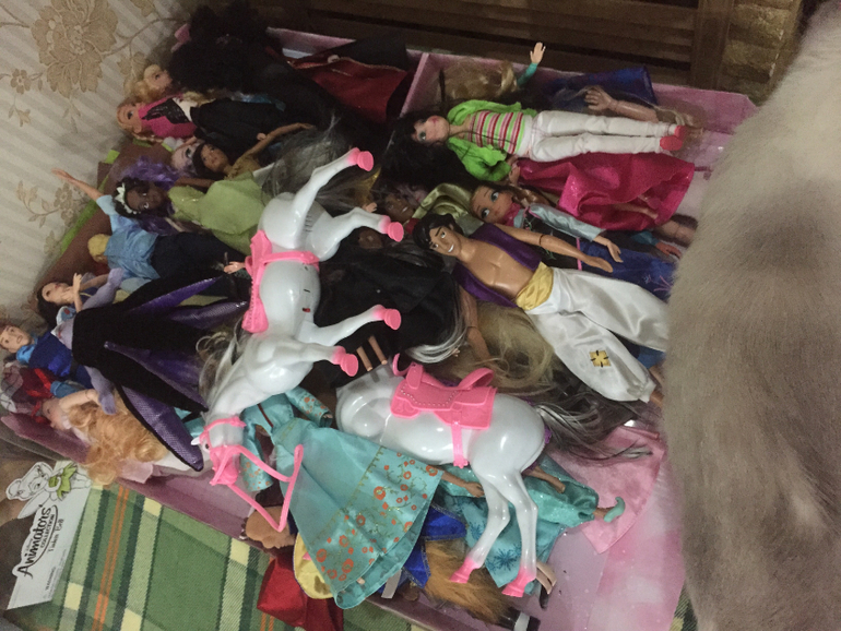 У кукол попорчены прически, туфельки "поменяны", или нахожу где-нить под кроватями. Переодевают...