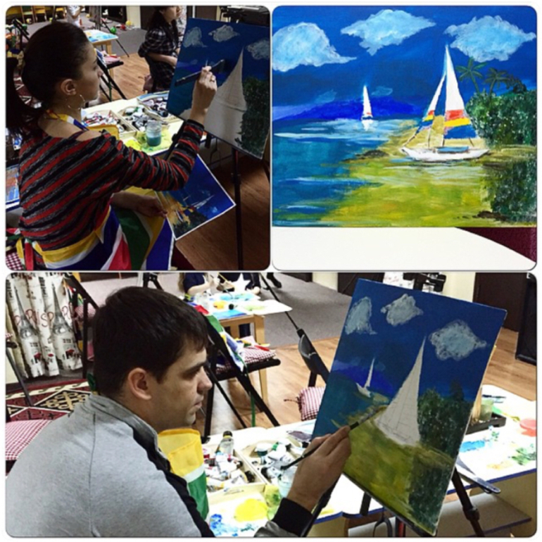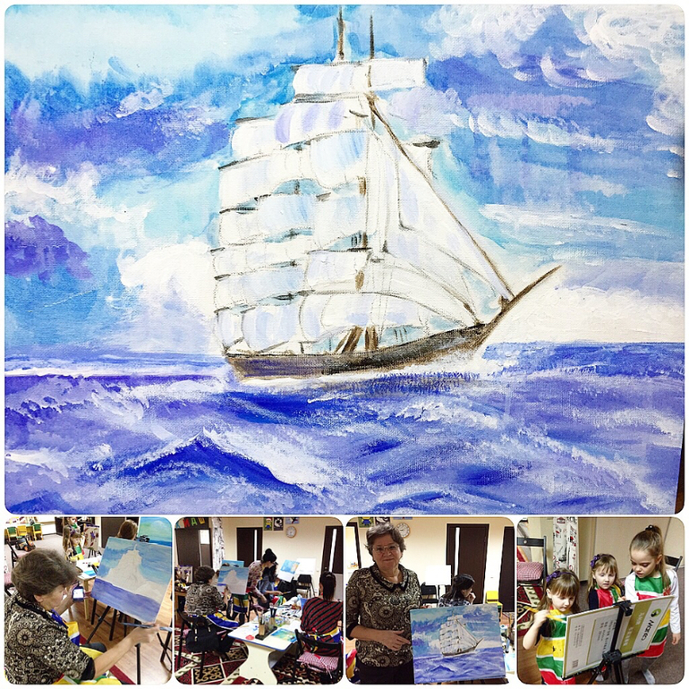 Ого! Такая разносторонняя!Думала,что же значит "сводим порисовать". И вот секрет раскрылся. Мама-отличный художник. Очень уж мне понравилось,как море прописано.
