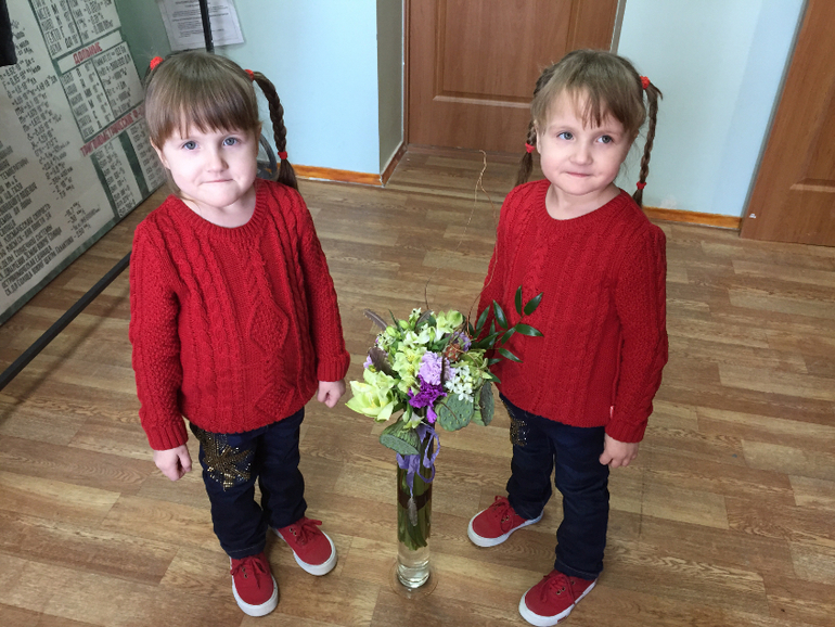 Сходили в школу, поздравили, заодно в школьной столовой пообедали :-))