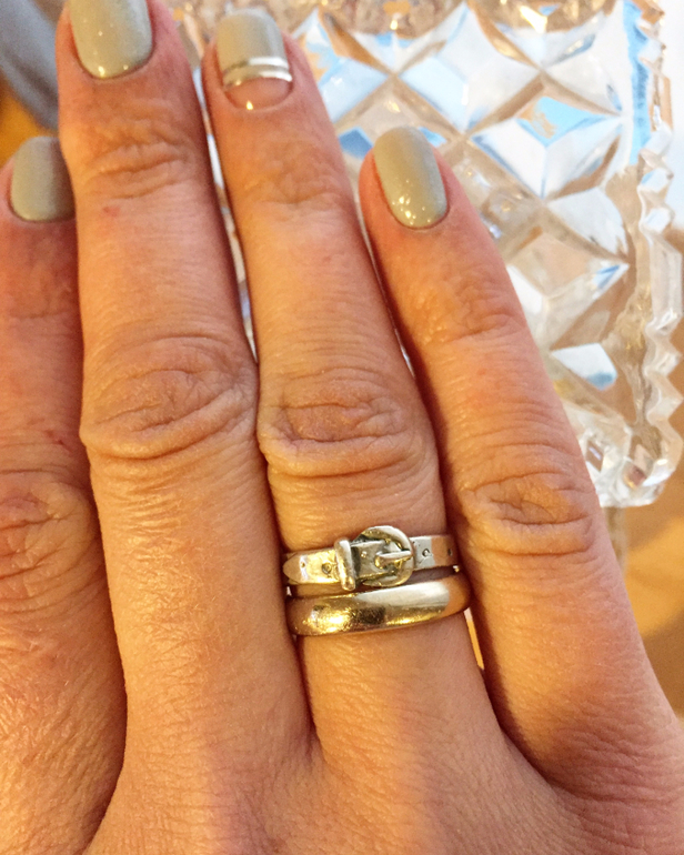 Не удержалась, купила себе старое (по утверждению продавца) серебряное колечко в виде ремешка, которое потом потемнело в серной бане :-) :-)