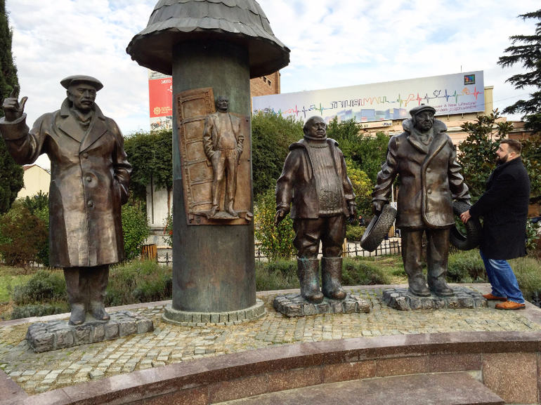 А это памятник героям фильма "Мимино", расположен прямо у метро "Авлабари", найти не сложно.