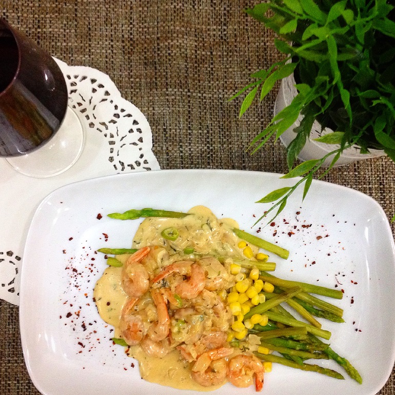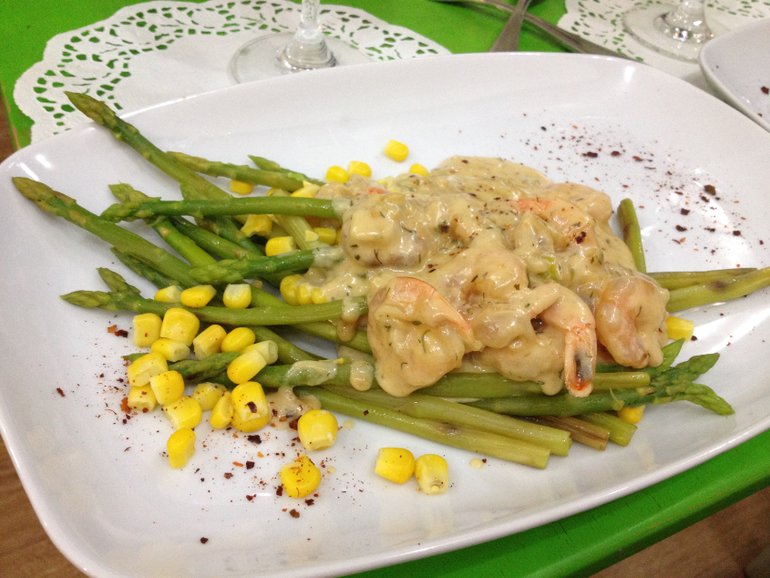 Вынимаем только что сваренную спаржу...поливаем соусом с креветками...