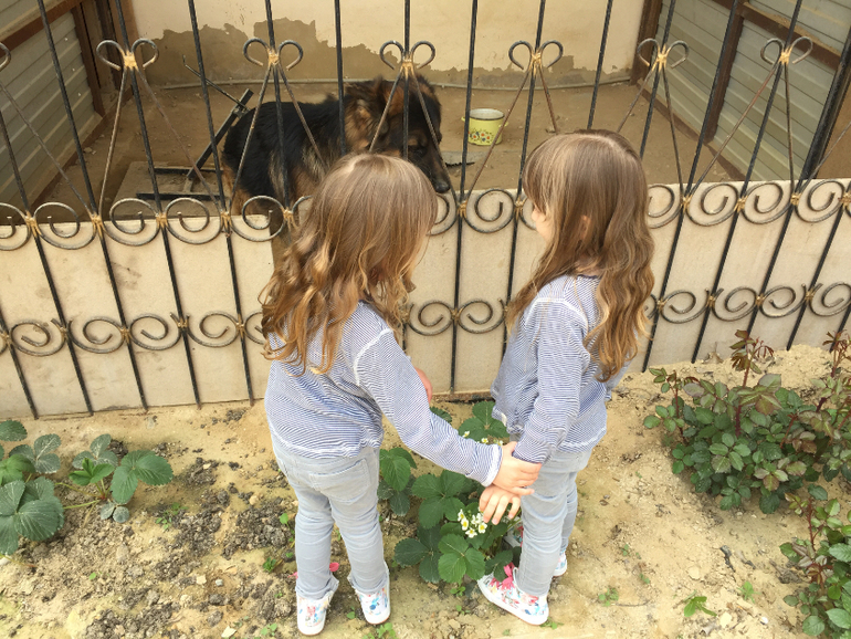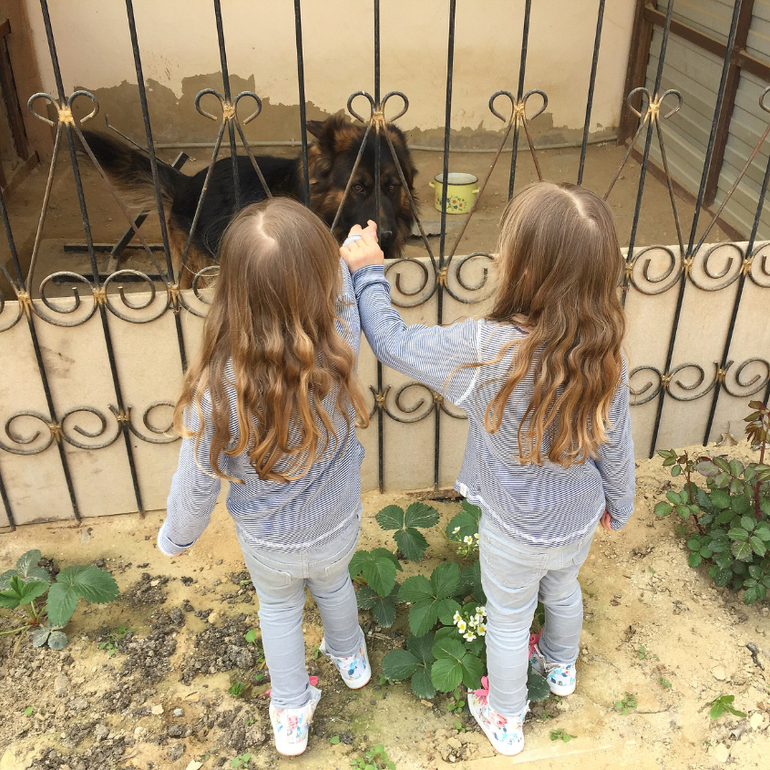 А это "храбрая" сестра Божена - очень хотела погладить собаку.