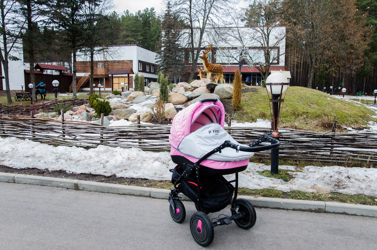 Катюша уснула, мы пошли гулять по территории и дышать свежим сосновым воздухом. Начало марта удивило ясной и теплой погодой.