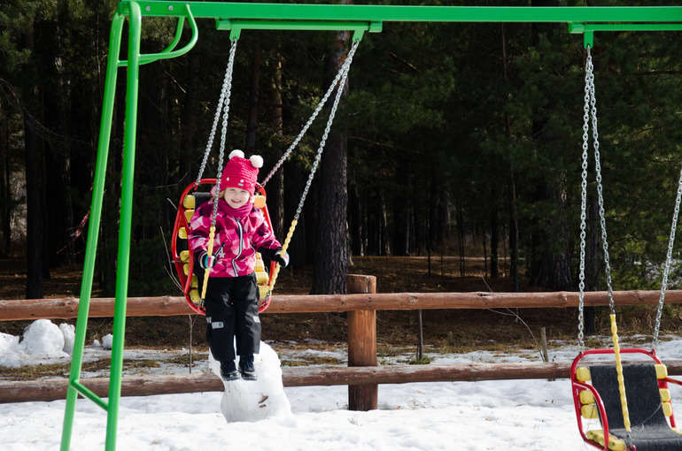 А потом пошли на детскую площадку. Самое заснеженное место на территории)) Тем не менее, на качелях были бережно положены коврики, чтобы ничего не отмерзало)).