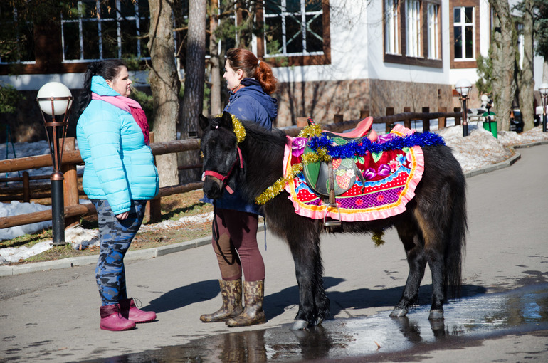 Пока мы с Катюшей гуляли, Настя успела прокатиться на пони.