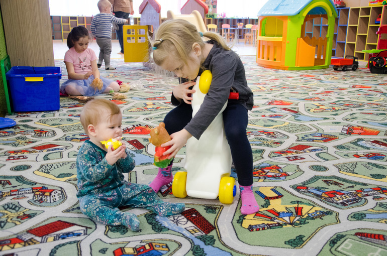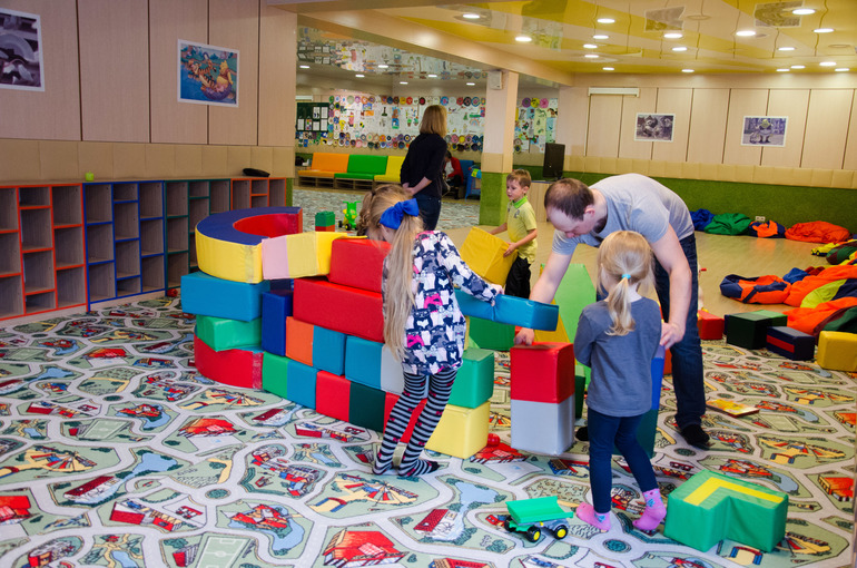 Субботний день начался с контрастного душа и вкусного завтрака. Мы уже присмотрели себе столик в ресторане, туда же и вернулись, окрестив его как "наш". Настя оооочень долго выбирала, что же она все-таки хотела поесть. От овсянки отказалась, предпочла блинчики. Катюше я брала с собой кашки Хайнц, на завтрак заваривала их, а еще давала ей погрызть кусочки яблока. После вкусного завтрака самое время было посетить детскую комнату, которая находится на первом этаже того же здания, где и ресторан.