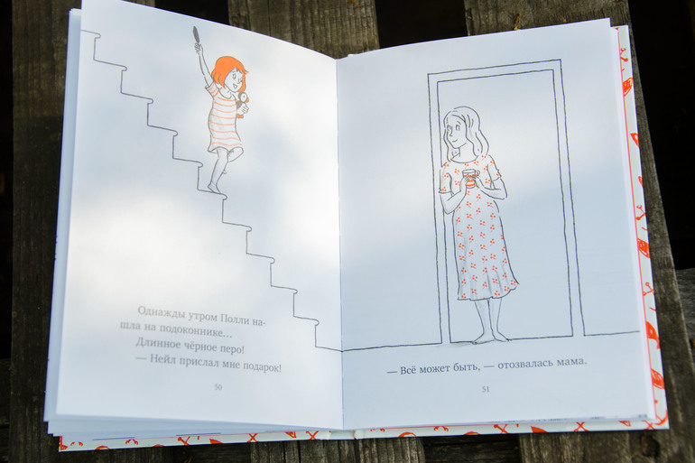 История про Полли и тупика очень похожа. У книжки очень удобный формат - чуть меньше А5 в твердом переплете. Приятно и не тяжело взять с собой). Настя и носила с собой эту книгу на дачу, тренировки, да везде. И говорила, что Нейл - это почти ее голубь. И ее радовало, что у Нейла все прекрасно сложилось. И она верит, что также хорошо все сложилось и у ее голубя.