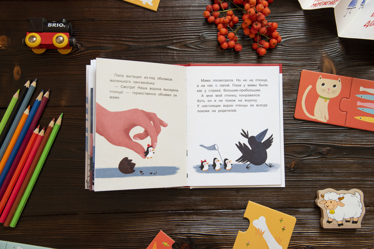 Меня покорила история, как у вороны вылупился пингвиненок????. Ну что ж не все дети похож на маму)).