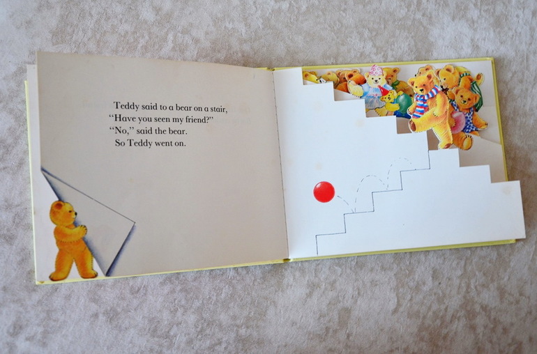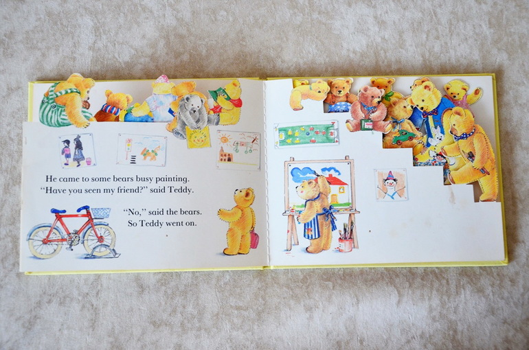 После того, как послушаем песенки, поиграем с пальчиками, поиграем в игру, мы обязательно стараемся что-то почитать на английском. Книг у нас пока немного, по мере возможности стараемся расширять библиотеку. Наряду с рекомендацией Светланы к этому курсу - книгой "Guess how much I love you" очень часто читаем Настину любимую книгу "Teddy's friend". Купили ее у Инги, как и еще несколько книг. У нее есть много всего интересного. Книги хоть и б/у, но в хорошем состоянии. Настя их все очень любит. А вот фото "Teddy's friend". Красивые мишки, резные странички, легкий текст. Очень и очень милая книга!