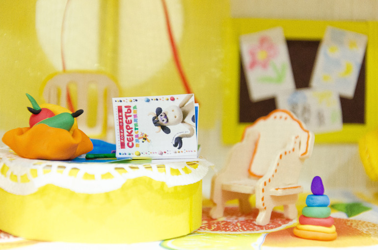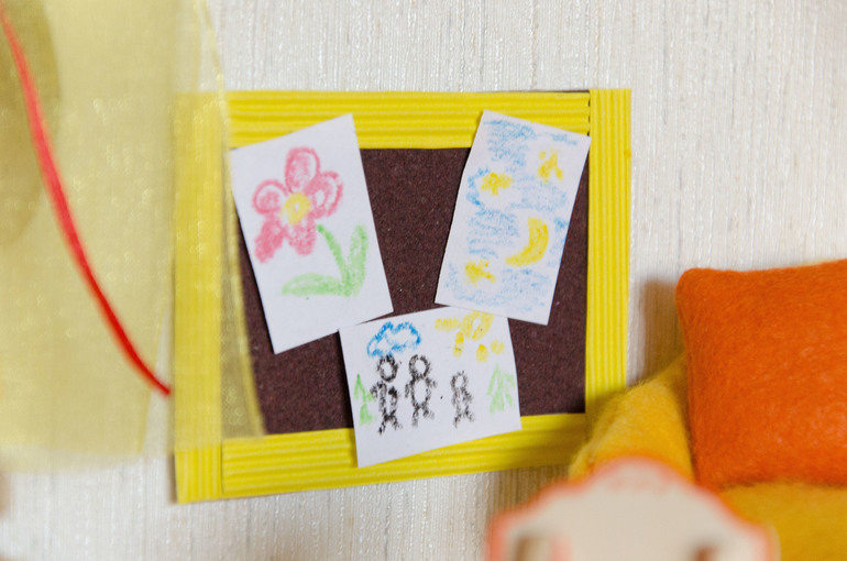 Рядом доска для рисования из картона и бархатной бумаги. На нее прикреплены рисунки.