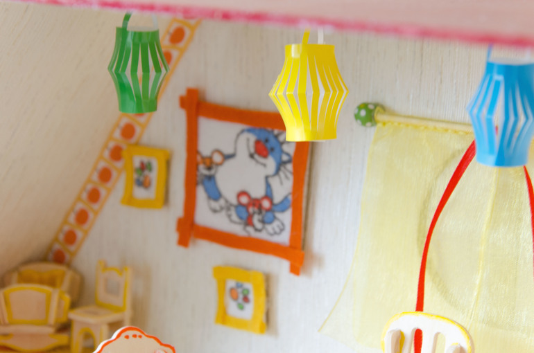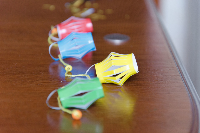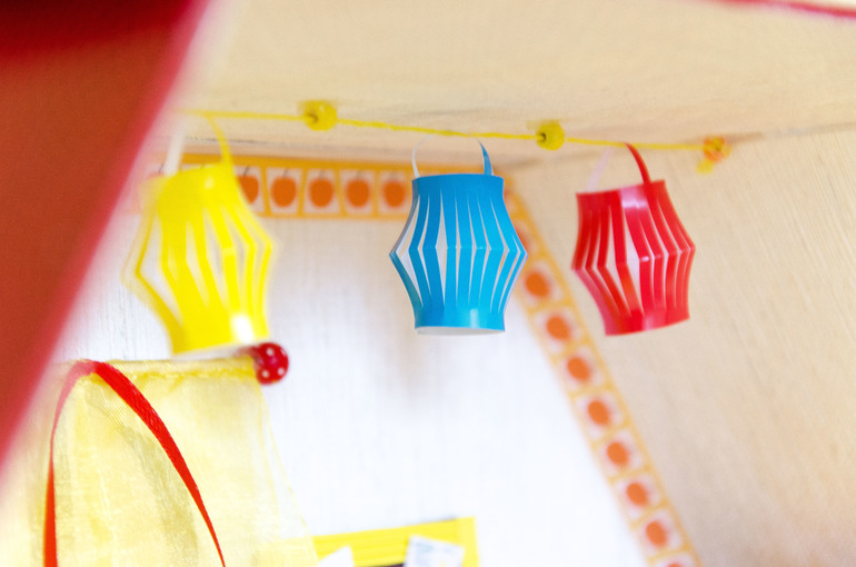 В роли светильников - моя гордость - гирлянда из крошечных бумажных фонариков.