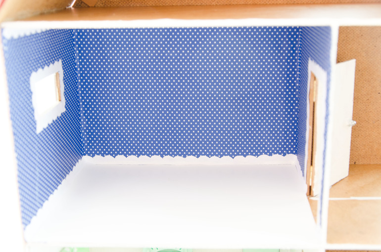 Стены поклеили обоями, потолок покрасили белой краской, а пол сделала из салфетки по приему, который описала Таня: на лист плотной бумаги положила пищевую пленку, затем салфетку, затем лист офисной бумаги и хорошо прогладила утюгом. Все отлично приклеилось)