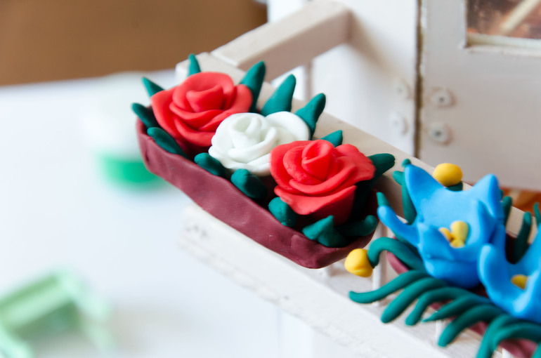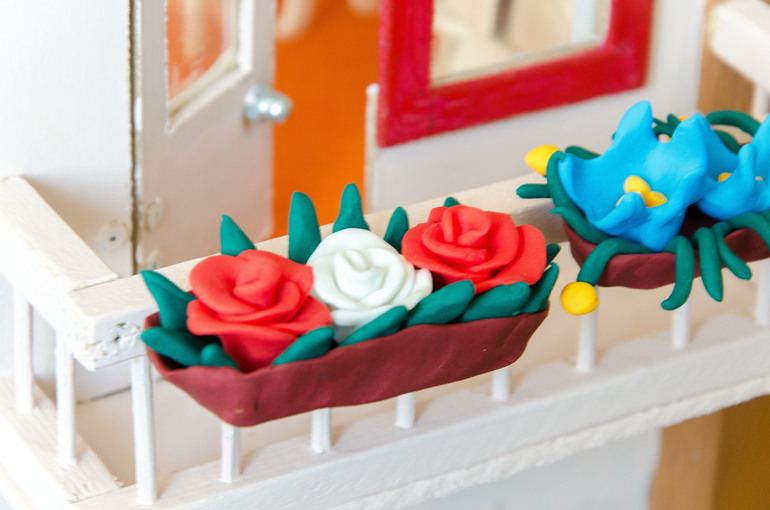 А на балкончике у нас растут цветочки из пластики в ящичках)