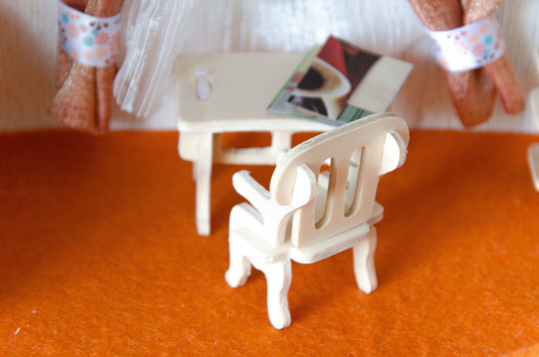 Столик с "журналом" - вырезка клеевой части у корешка из какой-то ненужной брошюры.