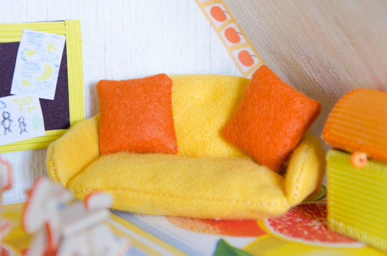 Диванчик с подушками шила из фетра по тому же принципу, что и диванчик в гостиную..