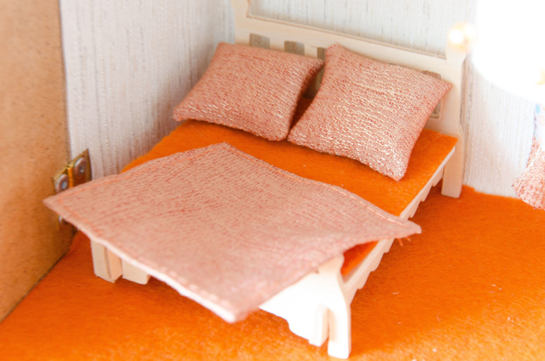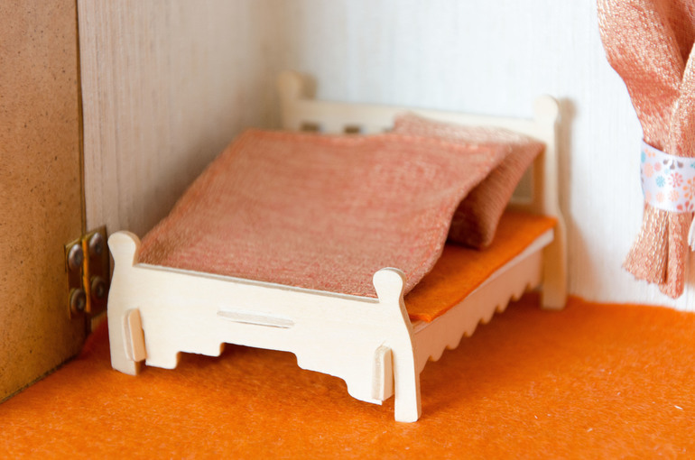 Кроватка с постельным бельем и колыбелька, к которой я сначала очень хотела балдахин приделать, но передумала, потому что кроватка неустойчивая..