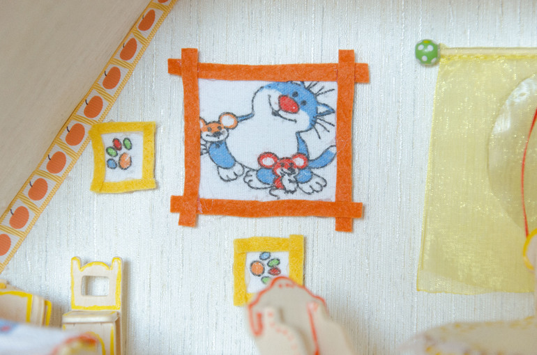 Картинки на стену - вырезки из ткани, наклеенные на картон. "Рамочки" из фетра.
