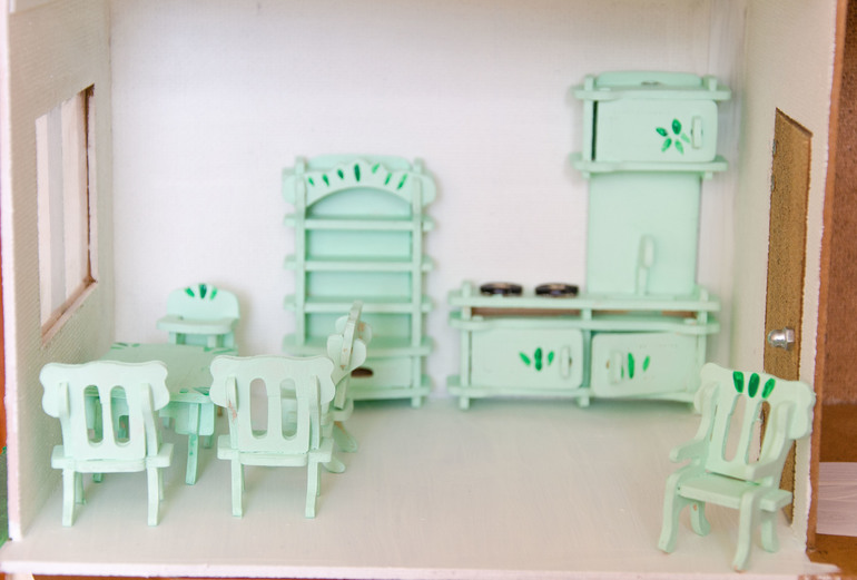 Дом в таком виде я получила в десятых числах апреля. И тут меня накрыла паника.. не успею! Тем более мы на больничном считай всю весну просидели, и вечером совершенно не было сил активничать, я вырубалась, пока укладывала Настю... Но примерно в это же время начала собирать мебель из готового набора, который купила на My-shop. На мой взгляд - мелковата. Например Sylvanian-фигурки не везде поместятся, только если от киндеров. Но выбирать уже не приходилось..Может, со временем заменю на что-либо подходящее.. хотя вряд ли) Ведь Настя уже будет в нем хозяйкой).