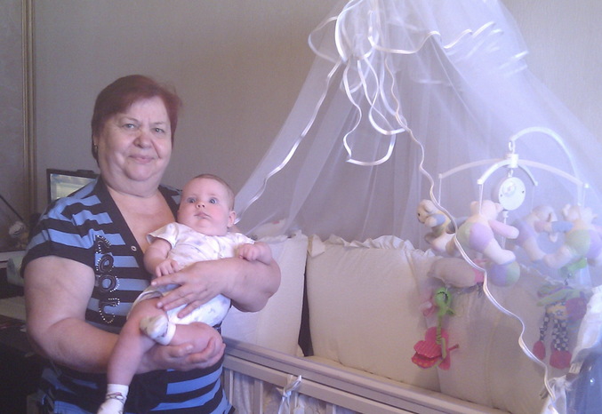 А в целом, Танечка очень веселая, любит у дедушки на руках кататься, с бабушкой кукарекать. Только бабушке и смеется, просто заливается.