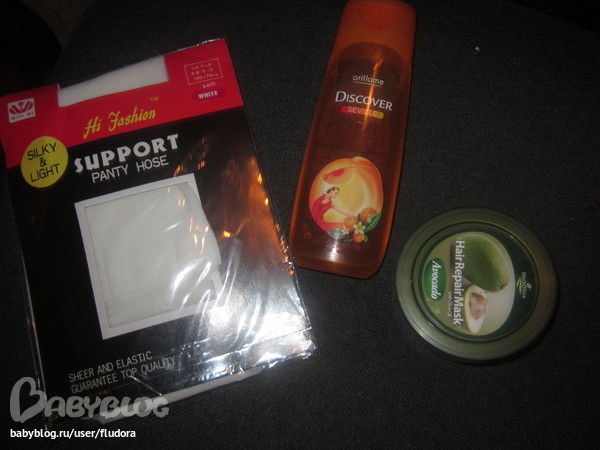 Это уже мне гель для душа и маску для волос(она мне как раз сейчас жизнено необходима)И белые колготки Веронички,как раз на НГ)