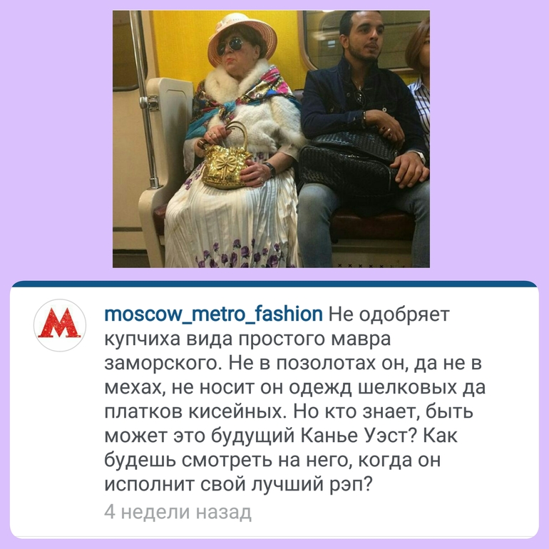 Люблю я Инстаграм. И где-то год назад подписалась на группу @moscow_metro_fashion. Над каждым фото практически плачу,а также над подписями,которые составляют админы группы)
