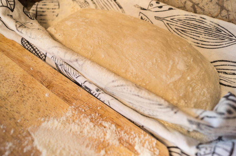 Ещё она лепила колобка и раскатывала тесто картонной втулкой из-под рулона упаковочной плёнки (да-да, у нас даже скалки нет :)). Но я была в волнениях от ответственного процесса и про фотик даже не вспомнила.