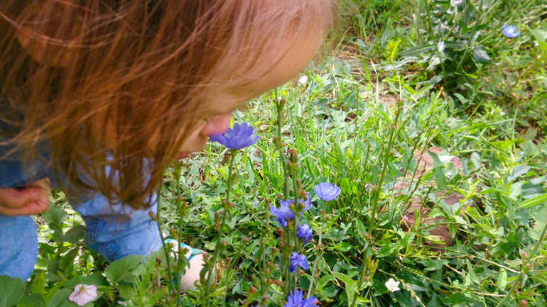 Недавно расцвели повсюду эти голубенькие цветочки. А я что-то слаба по части названий, как оказалось. Гуглом спасаюсь. Выяснила вот, что это цикорий обыкновенный. Удивилась. Для меня цикорий - это коричневый порошок из магазина, который некоторые считают заменителем кофе. По мне, так больше похоже на жжёную карамель.