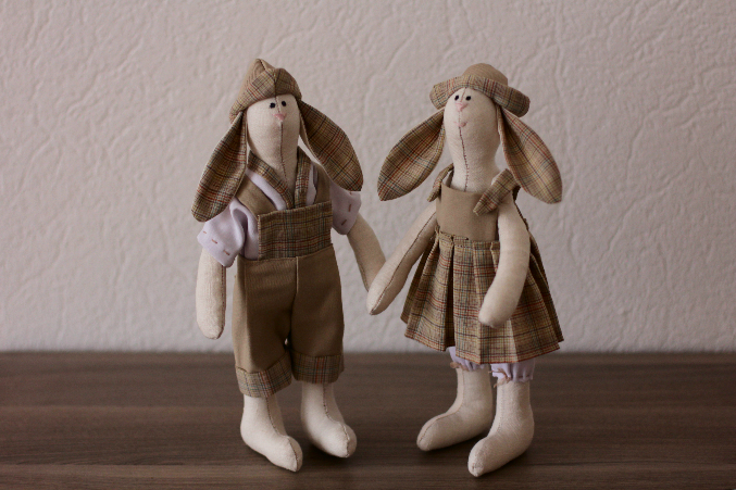 Вчера перебирала вещи в шкафу и нашла еще ткань. Сшила Зайца. Теперь у меня симпатичный комплектик.