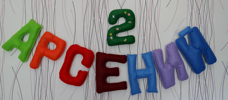 Торкнуло меня сшить из фетра буковки. Фетр лежал в запасах, он не очень хорошего качества, рада была найти ему применение.