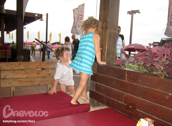 трудно мне пришлось в плане бусиной активности: она постоянно убегала от меня, залезала в опасные места (на сушильные веревки на высокой террасе, на край кювета у железной дороги) и еще шумела. дома я знаю, где ее искать и откуда ждать опасности. в неизвестных местах, теряя ребенка из вида, я была близка к отчаянию. в отеле я 10 мин истошно орала и носилась по лобби: ребенок пропал! а бусина тихо ржала, спрятавшись под столом